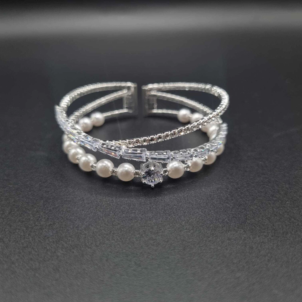 Descubrí la elegancia y sofisticación con la Pulsera rígida línea de strass INF con perlas en acero blanco. Este accesorio único combina la resistencia del acero blanco con el brillo delicado de los strass y la suavidad de las perlas, creando un diseño irresistible que realza cualquier look.